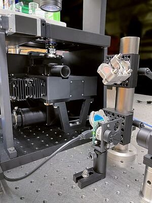 Prof. Seok-Hyun Yun's research group uses Zaber's MVR inverted microscope, which was customized to incorporate an optical path for Brillouin microscopy alongside epifluorescence and brightfield imaging. Brillouin microscopy is an optical technique pioneered in Prof. Yun's lab that allows the stiffness of biological materials to be probed with micron-scale spatial resolution, providing insight into biological processes which are modulated by local mechanical changes. Dr. Amira Eltony, lab post-doc and microscope builder, and other researchers are using the new microscope to perform imaging and map the biomechanical properties of cells and tissue sections.